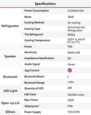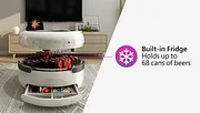 The built-in fridge can hold up to 68 cans of beer. The cooling temperature is adjustable from 33.8℉ to 44.6℉ (1℃ to 7℃).It can also hold plenty of juice, snacks, goodies, and did we mention wine? You can now sip on a brew, tip a glass of vino and listen to Billie Eilish without ever leaving the couch.